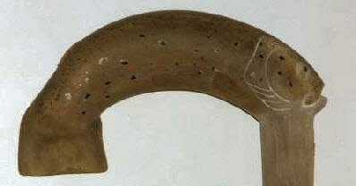 Trout tend to be the colour of the river that they inhabit, so it is best to try and obtain one before one starts to paint. Because of the colour of the horn is that of a fish I do not paint the belly. I use acrylic paints and use very thin washes to build up to the right colour.