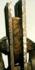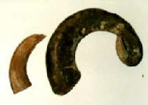 This is the core removed and at this stage the hollow can be measured. In both photographs one can see the spiral in the horn, this has to be removed.